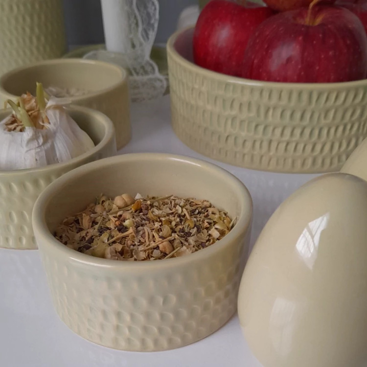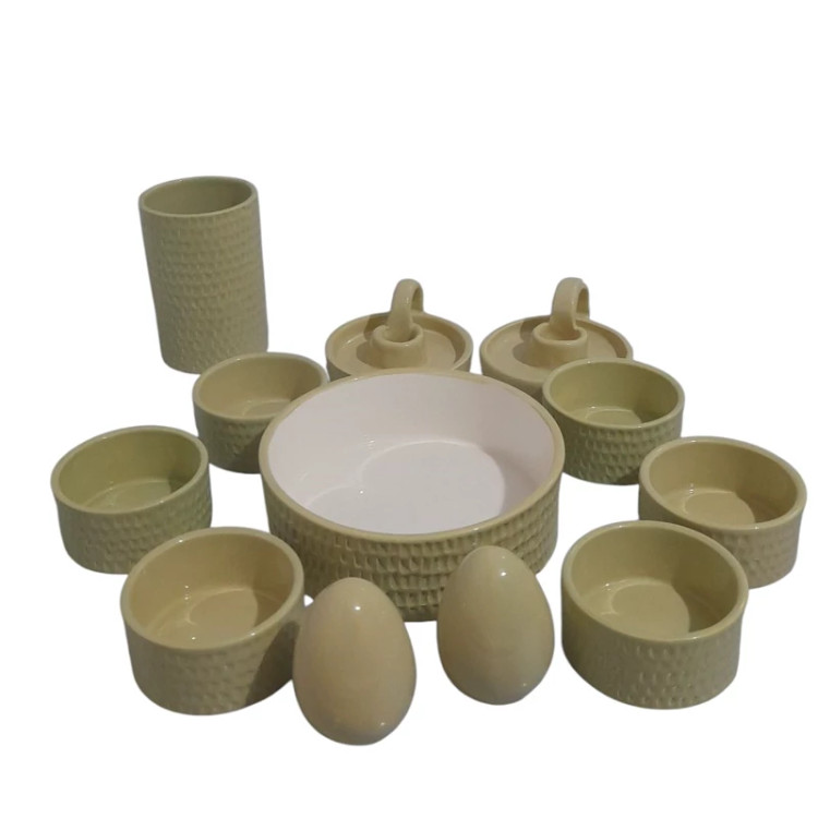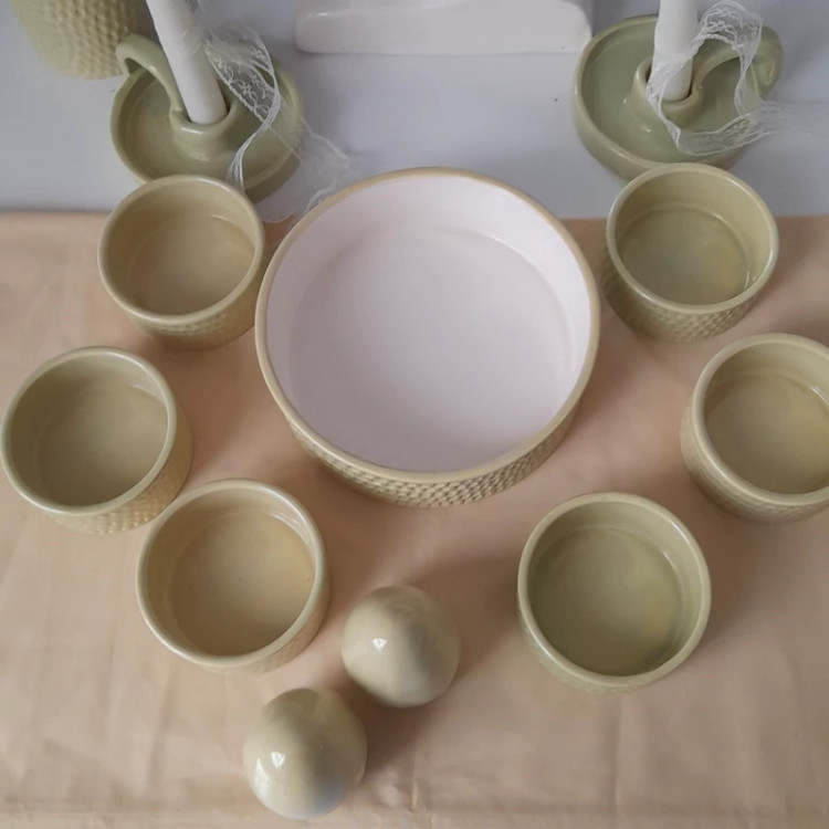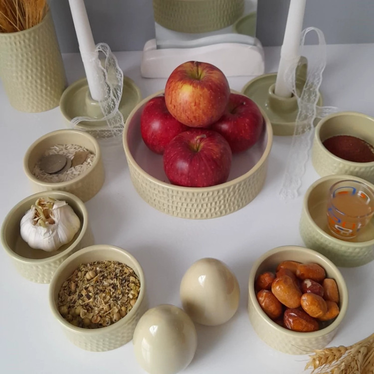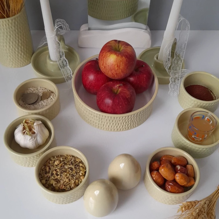 جنس بدنه از سرامیک درجه یک می باشد. دو بار در دمای بالای 1000 درجه در کوره پخت شده است . مجموعه ظروف هفت سین مینیمال ک شامل یک کاسه گرد 17 سانتی ،6 کاسه گرد 8 سانتی ،یک گلدان استوانه و دو عدد تخم مرغ بهمراه دو جاشمعی دست ساز می باشد این ظروف لعاب خورده و کاملا بهداشتی و مصرفی هستند