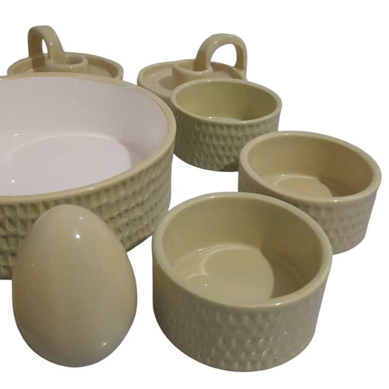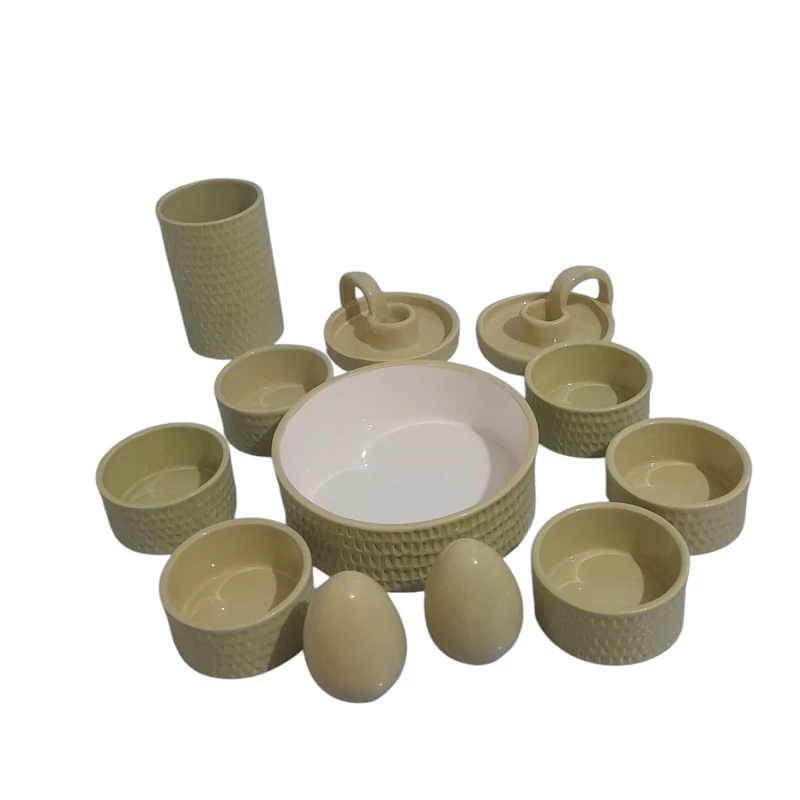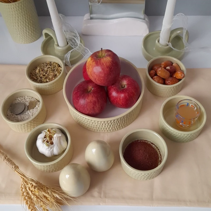 جنس بدنه از سرامیک درجه یک می باشد. دو بار در دمای بالای 1000 درجه در کوره پخت شده است . مجموعه ظروف هفت سین مینیمال ک شامل یک کاسه گرد 17 سانتی ،6 کاسه گرد 8 سانتی ،یک گلدان استوانه و دو عدد تخم مرغ بهمراه دو جاشمعی دست ساز می باشد این ظروف لعاب خورده و کاملا بهداشتی و مصرفی هستند