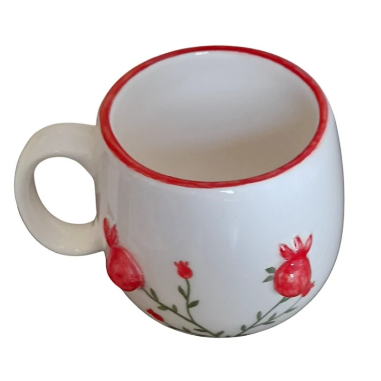 جنس بدنه از سرامیک می باشد که دو بار در دمای بالای 1000 درجه در کوره پخت شده است ، لعاب خورده و کاملا بهداشتی و مصرفی می باشد . انار ها برجسته هستند و نقاشی با دست انجام شده است .