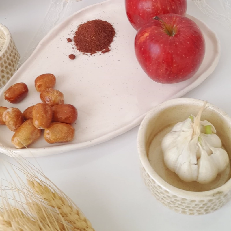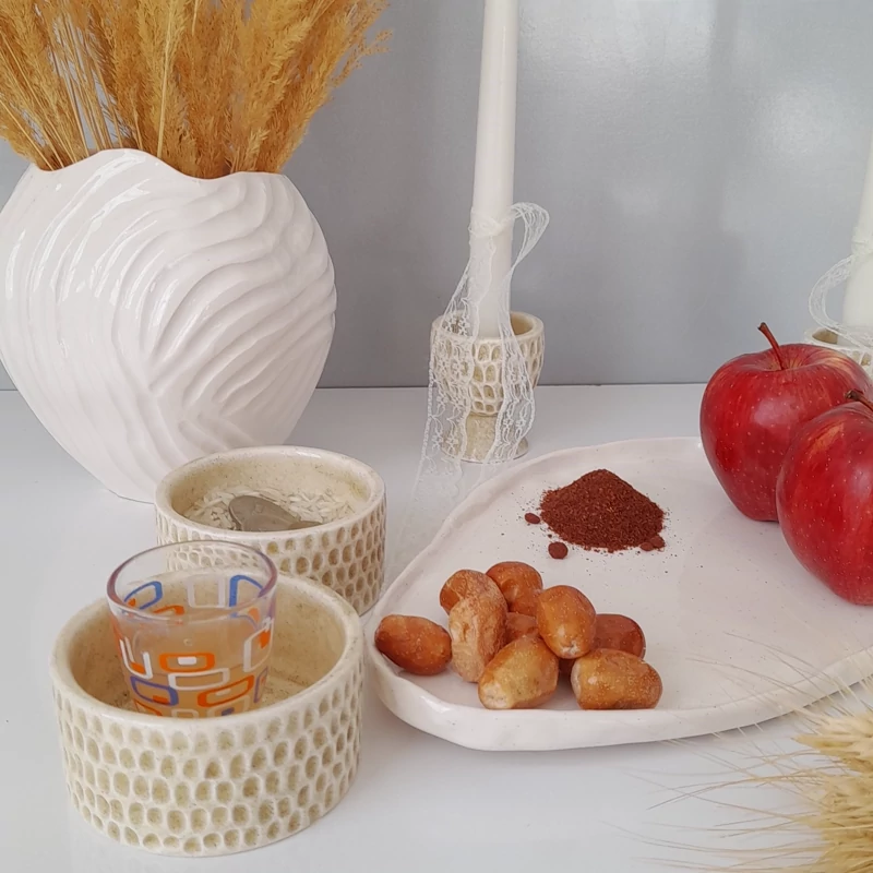 جنس بدنه از سرامیک درجه یک می باشد . دو بار دردمای بالای 1000 درجه پخت شده است . لعاب خورده و کاملا بهداشتی و مصرفی می باشد . پلیت دفرمه کاملا دستساز می باشد