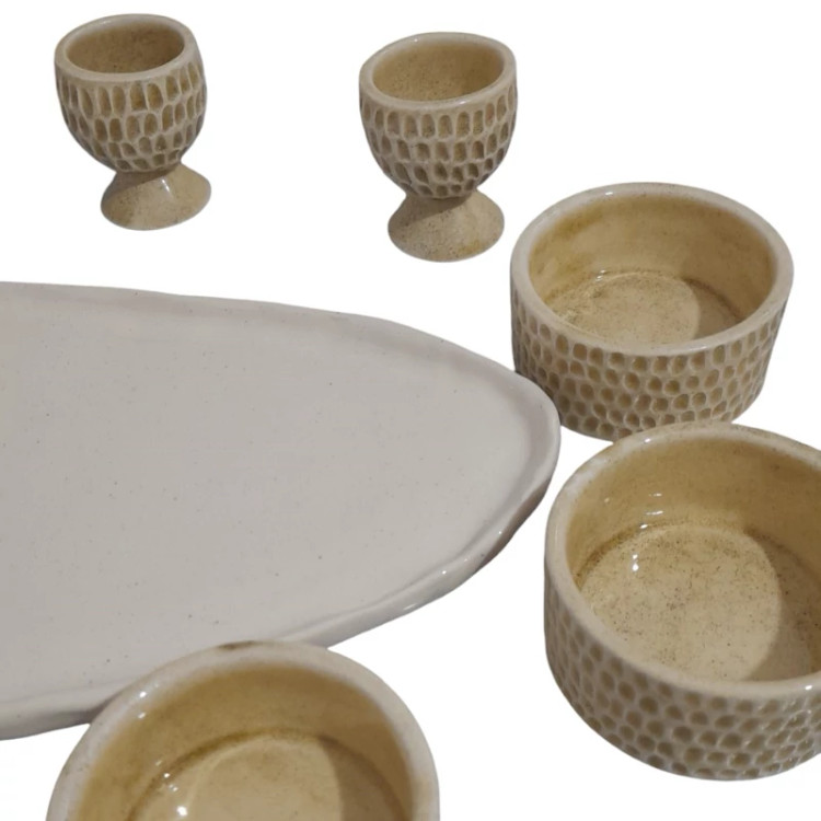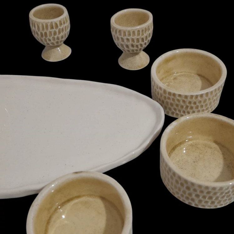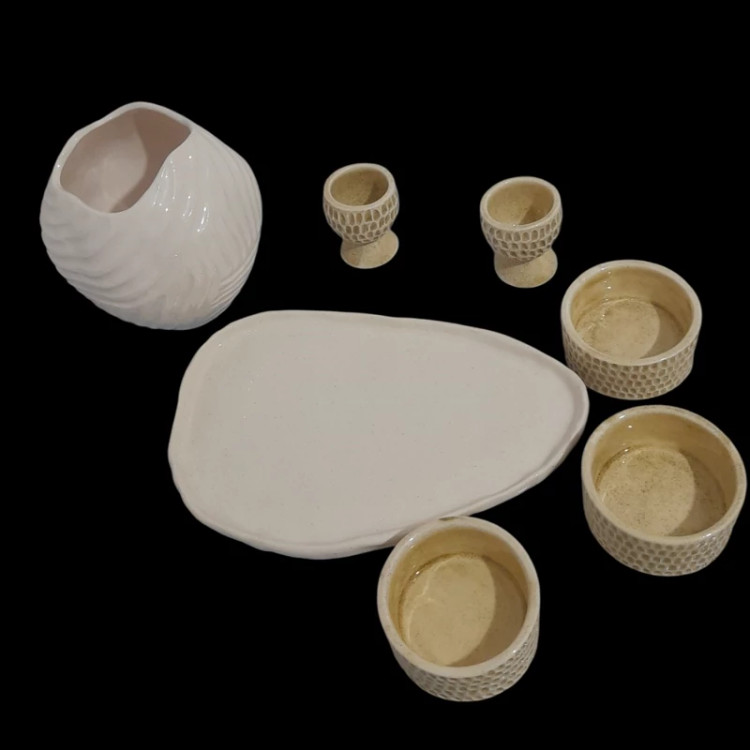 جنس بدنه از سرامیک درجه یک می باشد . دو بار دردمای بالای 1000 درجه پخت شده است . لعاب خورده و کاملا بهداشتی و مصرفی می باشد . پلیت دفرمه کاملا دستساز می باشد